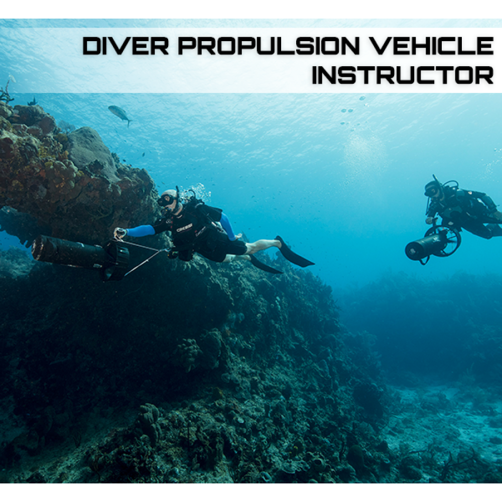 Diver Propulsion Vehicle Specialty Instructor is designed for certified scuba instructors who want to expand their teaching capabilities into powered diving environments. It’s a strong addition for instructors building experience toward Master Scuba Diver Trainer or increasing professional versatility.