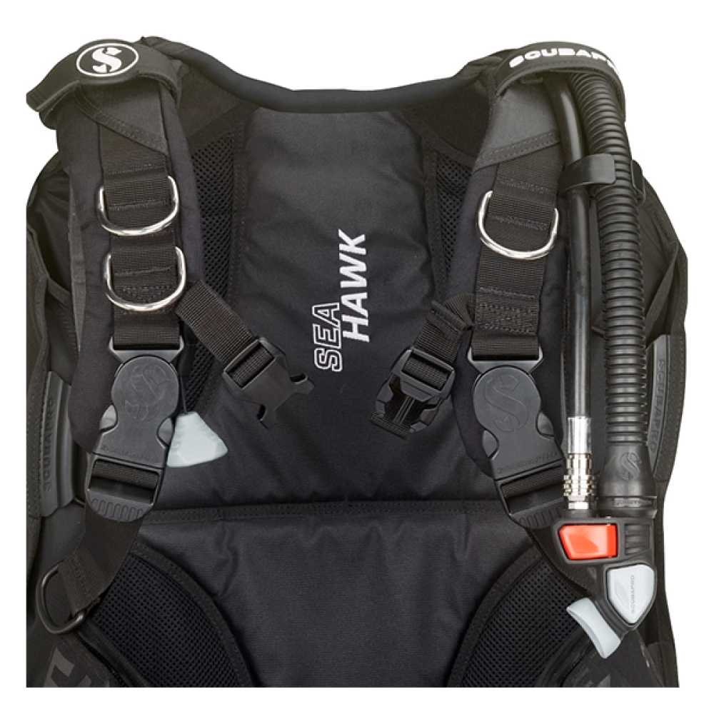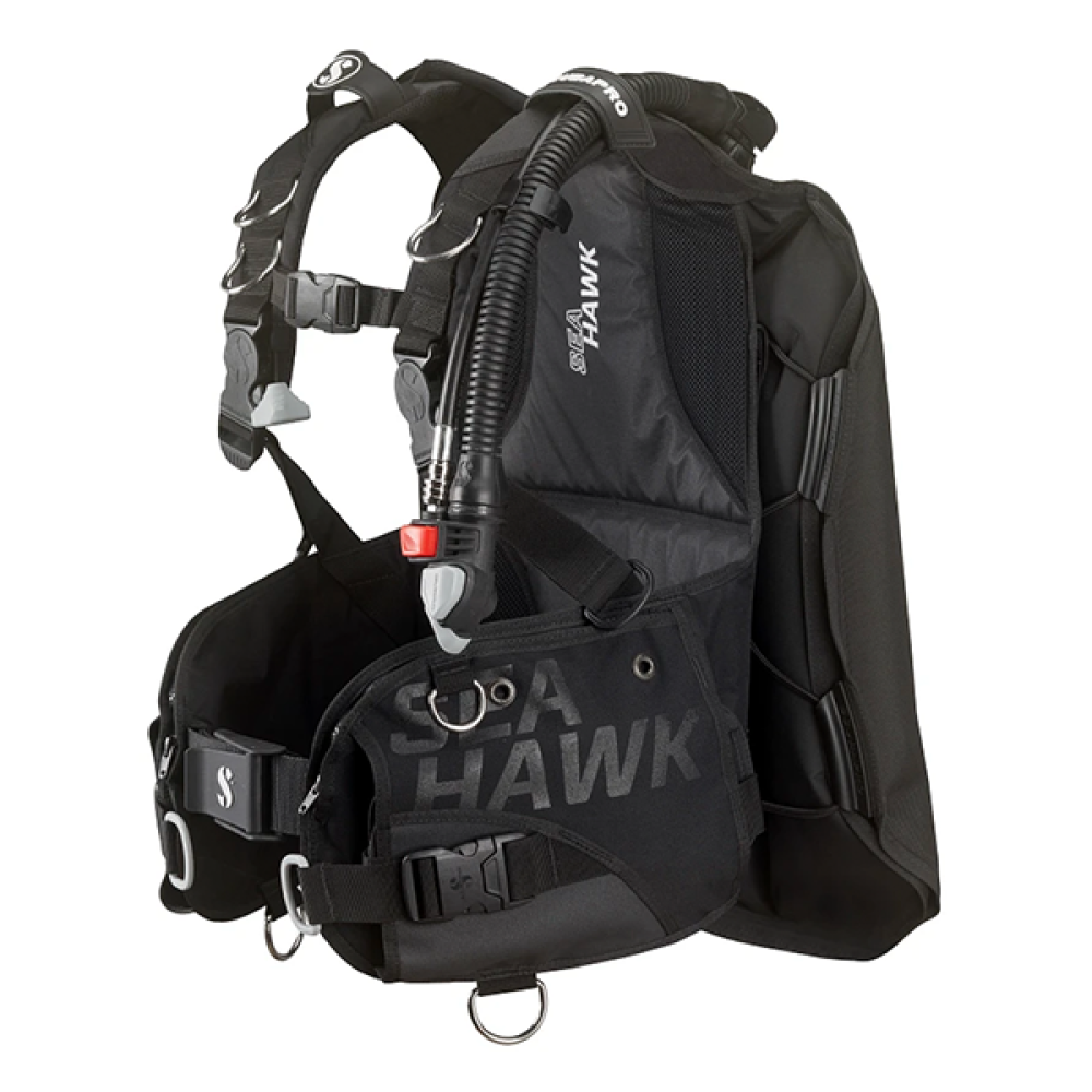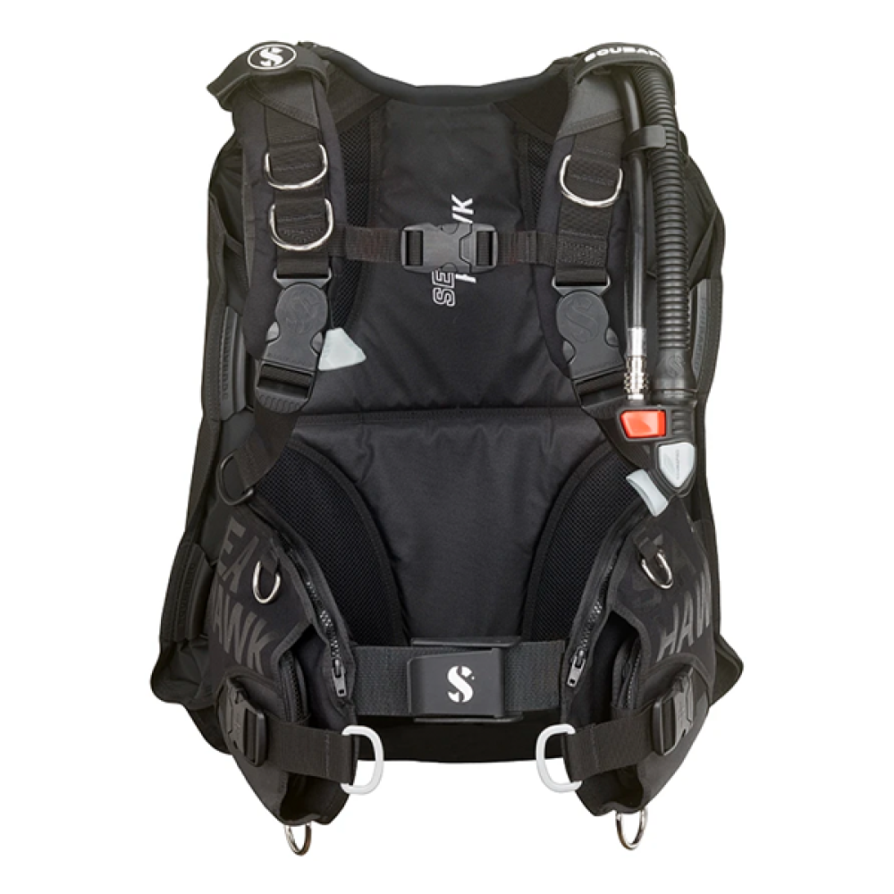 This popular all-purpose BCD features an ergonomic shoulder design with rotating buckles and a soft, reinforced backpack – this makes the Seahawk 2 much lighter than its predecessor, and extremely easy to fold and pack. The stainless steel Super Cinch tank band is positioned a bit lower than before, and an additional Velcro strap has been added to secure the tank when diving. Other features include a 50mm waist strap with lightweight cam buckle, redesigned cargo pockets and a range of airway and valve fittings. Offering a streamlined shape yet substantial buoyant lift when needed, the Seahawk 2 is the perfect choice for divers looking for freedom of movement, comfort and stability when cruising the depths.