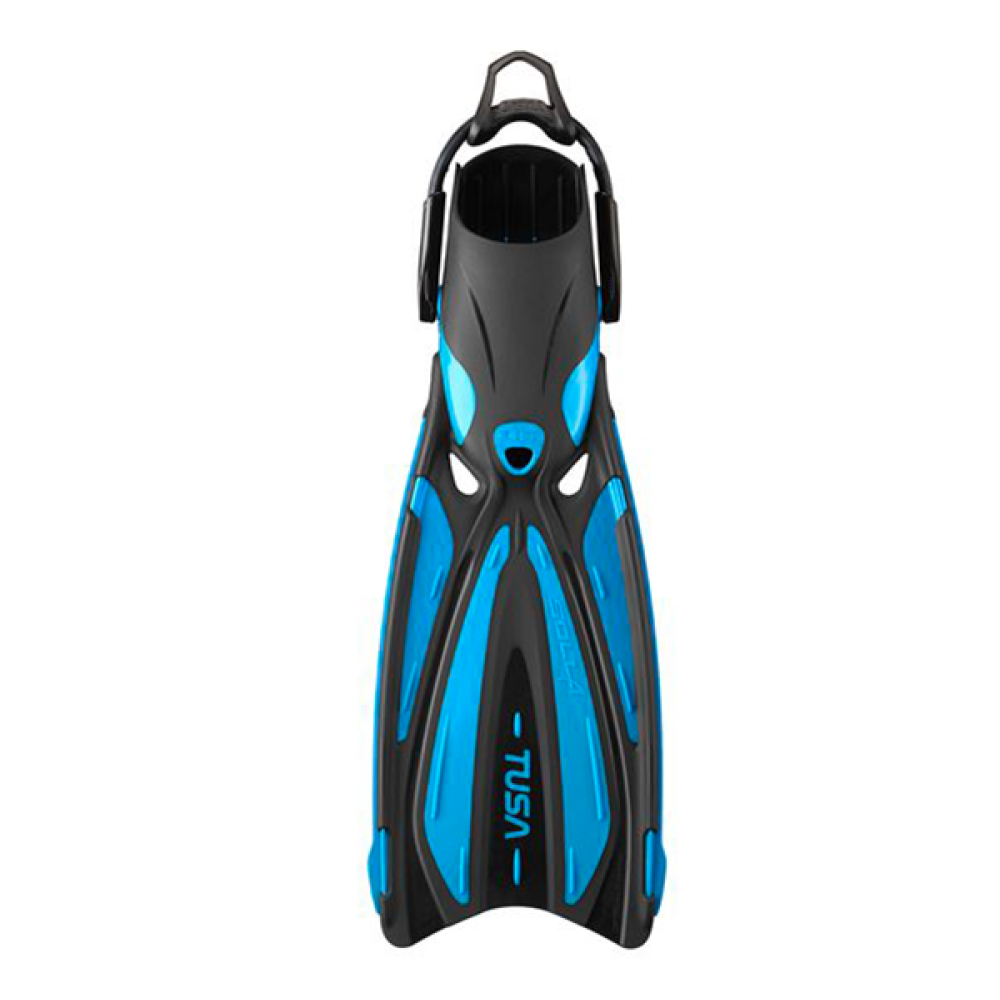 The SF-22 Solla combines TUSA’s rich history of performance fin design with the latest advanced materials and hydrodynamic innovations. A completely new design, the Solla has several unique features that deliver superior propulsion, speed and maneuverability. The Universal Bungee Strap is adjustable, and one-size fits all. It’s comfort-flex hinge, and rubber heel cup with a finger loop make for an easy fit.